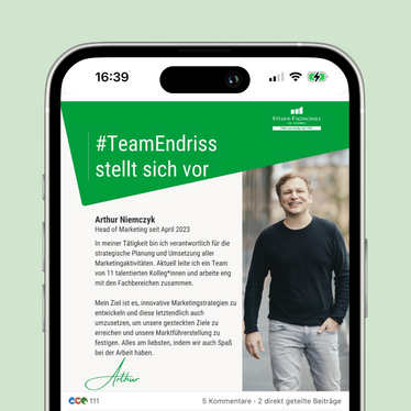 Worauf wartest du? Werde Teil unserer Community – folge uns jetzt! #TeamEndriss